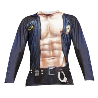 Photo-realistic Shirt Polizist, printed on both sides, Gender: Men Size: XL Long-sleeved Shirt Made From 100% Polyester, versatile Colour: Dark Blue/Tan For Carnival, theme nights or other fancy dress events, Manufacturer: Widmann