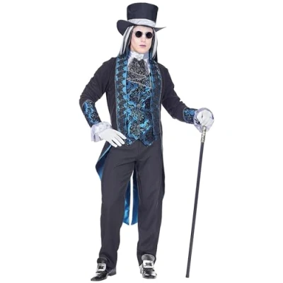 AmazonIdeal for halloween, carnival, all fancy dress parties Item size L composed of: jacket with vest, shirt and jabot, trousers, cylinder Halloween, vampires. Material: 100% Polyester Minimum age 16 years, Manufacturer: Widmann