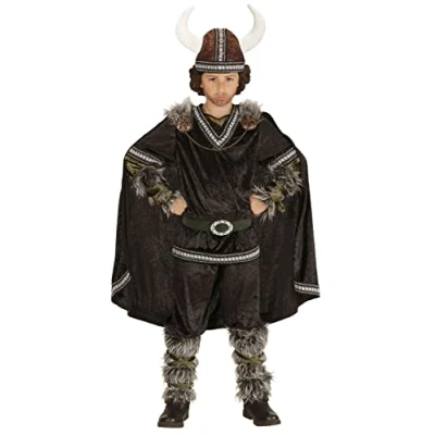 The package includes: jacket, trousers, belt, arm warmers, leggings, cape and helmet Perfect for Carnival and themed parties: ideal for school events, birthdays, Halloween or role-playing games Comfortable materials: lightweight and durable fabrics, suitable for long hours of use Guaranteed scenic effect: the Viking look will conquer everyone with its epic and adventurous style Size: 140 cm / 8-10 years. Item code: 05987, Manufacturer: Widmann