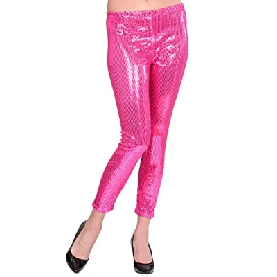 These pink sequin leggings are an ideal complement for your party, for a hen party or for a costume party Perfect for the Pink Night, for an evening at the disco or for taking part in a show They can be combined with a wide range of outfits, such as a pop star costume, a rock star costume, for a show or ballet Size: S Item code: 0301S, Manufacturer: Widmann S.r.l.
