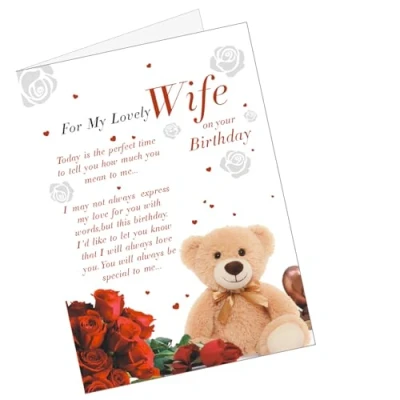 Birthday gift set for your wife: Our product package includes 1 piece of happy birthday wife card, 1 piece of white envelope, and 1 keyring lover keychain, ensure your wife's birthday is one to remember. Quality material: Birthday card for wife from husband set is made of quality paper that is not easy to tear or fade, offering resilience to bends. The wife keychain is crafted from long lasting stainless steel ensures rust resistance and deformation free. Wonderful design and wording: Birthday card wife with beautiful designs and sweet and some warm sayings for wife to expresses your love. Romantic design elements that include cute patterns, bears, roses, hearts, absolutely stunning and unique. Suitable sizing: Birthday cards for women wife is about 7.17 x 5.2 inches/ 18.2 x 13.2 cm, birthday card for wife providing ample space for messages and birthday wishes. The stainless steel keyring lover keychain is the suitable size to decorate a bag or backpack. Thoughtful gifts for your wife: Wife birthday cards set from husband is an ideal choice to express your love, the romantic gifts for her are sweet and cute. This present is a cherished memory she'll hold close.