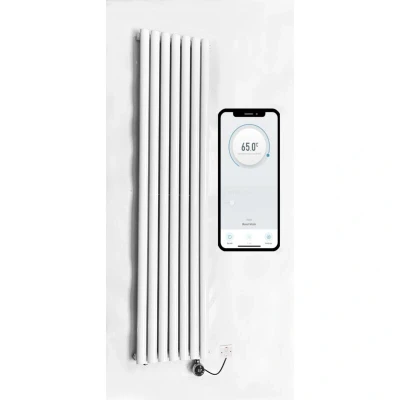 WiFi Smart Electric Radiator Oval Tube Single Panel Vertical Tall 1800mm h x 480mm w Column White