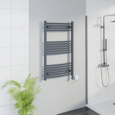 WiFi Thermostatic Curved Towel Rail Timer Anthracite 1000x600mm