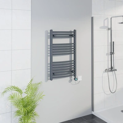 WiFi Thermostatic Curved Towel Rail Timer Anthracite 800x500mm