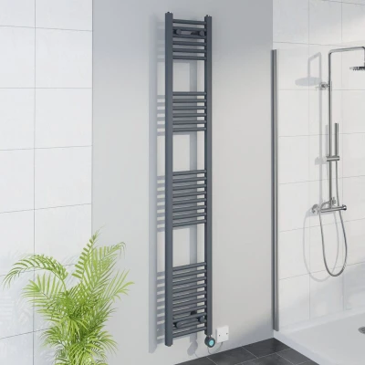 General description This WiFi Thermostatic Straight Towel Rail Timer in Sand Grey measures 1800x300mm and features a durable high-quality anthracite finish. It includes an 800W WiFi electric heating element that comes pre-filled and ready to install. The towel rail has a total of 30 straight bars arranged in a 6+6+8+10 configuration, providing efficient heating for your towels. It is backed by a 10-year guarantee for water leaks and a 2-year warranty for the electric heating element. Technical specifications Dimensions: 1800x300mm Power: 800W Number of bars: 30 (6+6+8+10) Pressure tested to: 10 bar Maximum working pressure: 7 bar Manufactured to: BS EN 442 Installation Fixing pack included with plugs and vents It is recommended to have a qualified electrician install this item Usage WiFi Connection: Download and install the Smart Life app from the App Store or Google Play Store Temperature settings: Free Mode (30°C to 70°C), Constant Temperature Mode (fixed at 50°C), Timing Mode