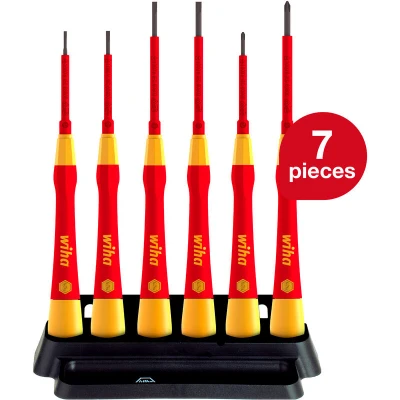 Simplifies your work : With a practical plastic holder to hang up or stand on a surface. Makes handling easier : Extra-long rotating cap ensures optimum feed. Increases your efficiency : Screwdriver handle size concept for optimal balance between precision and control. Offers you full protection : Each tool individually tested at 10,000 V AC and approved for 1,000 V AC. Increases your efficiency : Careful workmanship and controlled power transmission thanks to the slim handle with soft grip. Application : Ideal for delicate and high-precision fastening tasks for electrical installations and live parts. The challenge in precision screw fastenings is to work meticulously and carefully without damaging the work piece. Thanks to their long, slim handles and quick-turning zone, Wiha PicoFinish® fine screwdrivers are ideal for delicate and high-precision tasks in the electrical sector as well as for hobbyists and model building. Its ergonomic handle design with a soft zone makes it