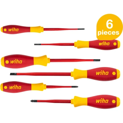 Multiple applications: A set of 6 screwdrivers that can be used for a wide variety of applications – for both professionals and hobbyists Ergonomic screwdriver set: With patented SoftFinish® handle design to ensure work is gentle on hands and muscles. Recommended by doctors and therapists at the German Campaign for Healthier Backs Slim blades: For electric applications, protective insulation integrated in the blade, for up to 33% slimmer blades, can easily reach low-lying screw and spring elements Optimal price-performance ratio: High quality, durable electrical tools, robust tool set Contents of the screwdriver set: 4x slotted, 2x Phillips Thanks to our unique Wiha handle size concept with an optimal balance of power and control, our screwdriver set is easy to hold. While the screwdriver set is not magnetic, it can be magnetized and demagnetized with our magnetizer. As laser-cut tips already wear off after a few uses, we do not have a laser-tip blade. The insulated screwdrivers