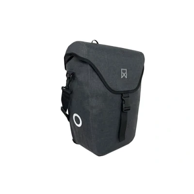 100% waterproof polyester/TPU Waterproof roll* and Velcro fastener Eye-catching reflective print Fits almost any pannier rack thanks to horizontally adjustable hooks With removable and adjustable shoulder strap