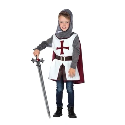 The knight outfit consists of a top, hood, cape and belt in size 152 The cape is attached to the shoulders with Velcro fastener The sleeves and hood are made of silver fabric to make them look like a chain mail The belt is made from a leather look fabric and is closed with a silver buckle The supple fabrics are washable at 30 °C, Manufacturer: Wilbers Karnaval B.V.