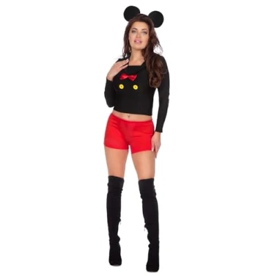 Luxurious mouse look: elegant mouse costume for women in black/red for a glamorous appearance at carnival, Halloween and theme parties 2-piece outfit in size 38: consisting of long-sleeved top with lapel collar and matching shorts - stylishly combined and figure-hugging cut COMFORT STRETCH FABRIC High quality firm black stretch top and red stretch shorts ensure a comfortable feel Fit: elastic waistband in the shorts provides secure fit and freedom of movement - for dancing, celebrating and long party nights Elegant details and easy to clean: yellow buttons and red bow in satin look set luxurious accents - washable at 30 °C and non-iron, Manufacturer: Wilbers Karnaval B.V.