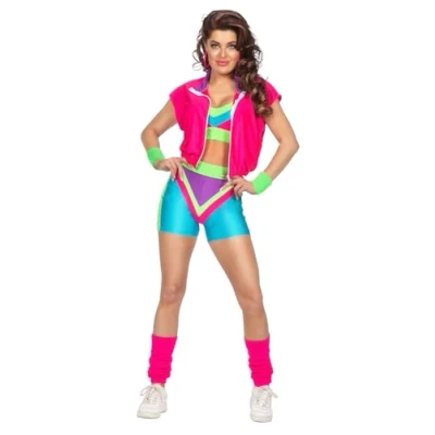 Neon aerobic look in 80s style: with this eye-catching aerobic costume for women, you can rely on a sporty retro appearance - for carnival, 80s/90s parties, hit party and neon events 4 Piece Aerobics Set Size 42 - Consists of short top, jacket with cap sleeves, short leggings and shorts - the jacket closes with a zip at the front for convenient on and off Stretch fabric for comfort: Firm, comfortable stretch fabric in bright neon colours ensures a comfortable feel and a sporty fit Fit and freedom of movement: elastic waistband in the top as well as in the waist of the shorts provides the necessary support and maximum mobility - excellent for dancing, celebrations and active events Luxuriously processed and easy to clean: Various neon inserts create a dynamic sports look with high-quality look - washable at 30 °C and non-iron, Manufacturer: Wilbers Karnaval B.V.