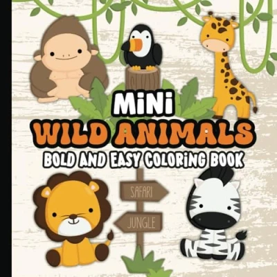 Wild Animals Mini Coloring Book: Big and Simple Groovy Mental Health Pages for Adults, Teens Kids Large Easy Illustrations Girls Boys 6 x inches
