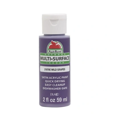 Wild Grapes Apple Barrel Multi-Surface Acrylic Paint makes your projects even more fun and easier. It bears the same great characteristics as original Apple Barrel paint quality, selection, and value with the added benefit of multi-surface coverage! This water-based, certified non-toxic craft paint is great for tin, terracotta, paper mache, canvas, wood, plaster, rigid plastic, fabric, concrete, glass, and ceramics and it cleans up easily with soap and water! Size: 2 oz. More Info: 2 oz. provides up to 4 square feet of coverage, 2 coats PE21979E MPN 21979E