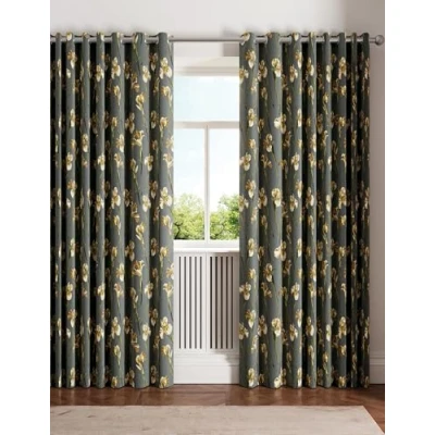 Wild Iris Lined Curtains 66X54 Charcoal