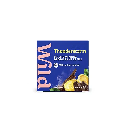 Wild Thunderstorm Natural Deodorant Refill (40g) offers 24-hour odor protection with natural, vegan-friendly ingredients and an invigorating scent. Its plastic-free design supports sustainability, making it an ethical and effective choice for daily use.