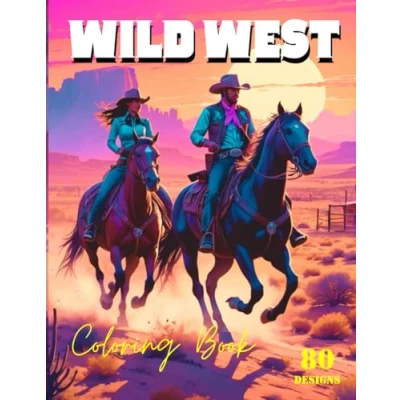 Wild West Coloring Book: 80 Stunning Illustrations of Cowboys, Cowgirls, Horses and Western Towns in Old American for Adults Teens