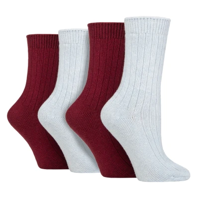 WILDFEET 4 Pack Ladies Cashmere Boot Socks Breathable Ribbed Crew Wool Bed for Women (4 8, Blue/wine)