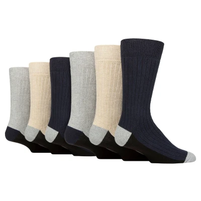 Step into a world of comfort and sustainability with these exceptional recycled cotton boot socks. Made with a focus on reducing environmental impact, these socks are a conscious choice for eco-conscious individuals. The cushioned design ensures comfort, making them perfect for all types of outdoor activities and everyday wear with boots. With 6 pairs of high-quality men's socks in each pack, you'll have the perfect companions for your adventures and daily routine. The ribbed knit legs offer a snug fit that ensures maximum comfort and prevents slipping. The terry loop pile lining adds an extra layer of warmth, making them perfect for the colder months. The fibre blend is principally cotton that has been derived from recycled sources, meaning that by wearing them, you’re stepping up with Wildfeet in helping reduce waste and encourage sustainability in production. Designed to withstand the demands of everyday wear, these socks feature reinforced soles, toes, and heels for enhanced durability and extended lifespan. You can trust these socks to last on all your outdoor adventures, providing reliable support and protection. Wild Feet is a range of socks featuring cool designs, bold colours and quirky catchphrases - from pugs and penguins, to lions and llamas! Choose from a range of styles for men and ladies, from dress to trainer socks. There are even some novelty styles available! These socks are available in 3 styles. They come in one size: Men’s 6-11 UK, are made from 45% Recycled Cotton, 41% Polyester, 11% Polypropylene, 2% Elastane, 1% Polyamide and are machine washable.