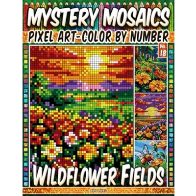 Wildflower Fields Mystery Mosaic Color by Number Vol. 18: 100 Designs in Pixel Art Blooming Beauty Across Rolling Meadows (Pixel Number)