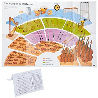 This poster introduces the elements of the orchestra Shows the location and grouping of the instruments An attractive and informative addition to any music room or music corner Can be used as an educational aid or for display Size: 100 x 70 cm