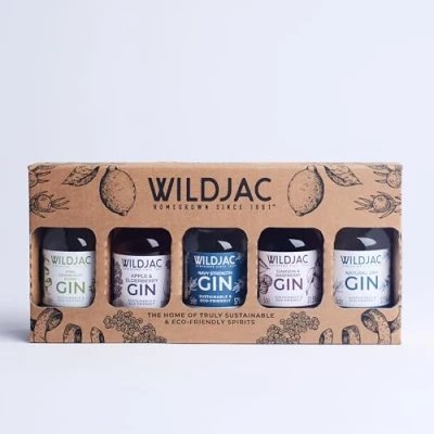 Perfect Valentine gift INGREDIENTS… NATURAL DRY & NAVY STRENGTH GIN – Douglas Fir, Coriander, Liquorice, Elderberry, Chamomile, Juniper, Angelica, Lemon Balm, Fresh Orange, Fresh Lemon, Thy. | PINK GRAPEFRUIT & LIME GIN – Douglas Fir, Coriander, Liquorice, Elderberry, Chamomile, Juniper, Angelica, Lemon Balm, Fresh Orange, Fresh Lemon, Thyme. | DAMSON AND RASPBERRY GIN – Angelica, Orange, Organic autumn bliss Raspberries and Shropshire prune damsons from the Augernik Fruit Farm, Juniper, Coriander. CHANGING THE WORLD ONE SIP AT A TIME!... Supporting the environment not only by the way we produce our products but also the way we label, package and deliver Wildjac. It doesn’t stop there either, we give back directly to highly vetted environmental, non-profit organisations with our 1% for the Planet commitment! SUSTAINABLE AND ECO-FRIENDLY… Inspired by where we live, nature, and the things we can forage in the beautiful Wyre Forest or grow in our garden close to the River Severn, we are a truly sustainable brand. THE WILDJAC MINI GIN GIFT PACK… Want to try all our gin range? Now you can! A mini gin of each of our range presented in a ready-to-gift branded box. It contains 5 x 5cl bottle of 1 x 5cl Natural Dry Gin 37.5%, 1x 5cl Pink Grapefruit & Lime Gin 37.5%, 1x 5cl Navy Strength Gin 57%, 1x 5cl Damson and Raspberry Gin 37.5%, 1x 5cl Apple and Elderberry Gin 37.5%. Packaging is 100% recyclable! Please reuse or recycle!