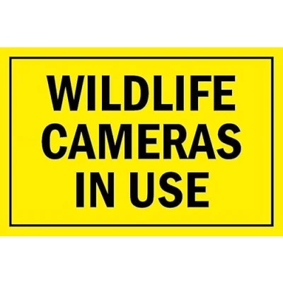 Wildlife cameras in use, warning sign. Self adhesive sticker. Printed using the latest digital technology and laminated for extra durability. Remove backing film and apply to dry, smooth, oil free surface. All signs come with a 5-year warranty. All our signs are UV resistant meaning they will not fade in sunlight. Our vinyl stickers are temperature resistant from -40°C to +80°C.