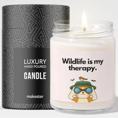 Wildlife Lovers Gift Luxury Soy Wax Candle Vanilla, Jasmine, Sugared Almond Makester