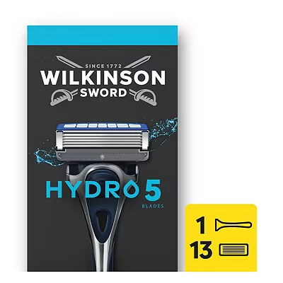 Wilkinson Sword Hydro 5 Razors for Men, Value Pack, Skin Hydration, Carbon Coated Blades, Men’s Shaver Razor Handle Plus 13 Blade Refills