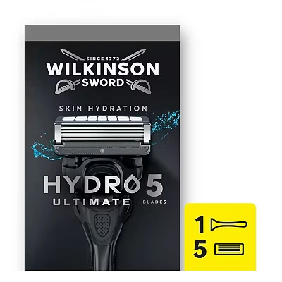Wilkinson Sword Hydro 5 Ultimate Razors for Men, Value Pack, Hyaluronic Acid, Carbon Coated Blades, Men's Shaver Razor Handle Plus Blade Refills