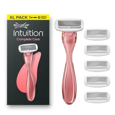 ULTRA GLIDE SMOOTHNESS: Five Ultra Glide blades deliver a close and smooth shave; shaving from brand of razors women trust to reach even those tricky body areas with ease HYDRA-BOOST(TM) SERUM: Hydra-Boost(TM) serum with a touch of hyaluronic acid creates a hydrating glide that lasts up to two hours after shaving SKIN-LOVING FORMULA: Dermatologically tested with vegan formulation suitable for sensitive skin; this shaving razor helps reduce shaving irritations and leaves skin soft, smooth and cared for PACKAGING: Packaging made with more than 90 percent recycled paper (mix of PCR and PIR); Packaging recyclable, check your local recycling facilities COMPLETE CARE XL PACK: Includes one Intuition razor handle and six blade refills; refills are compatible with all Intuition Complete Care and Bikini Care Duo razors to perfect your summer shaving kit for women
