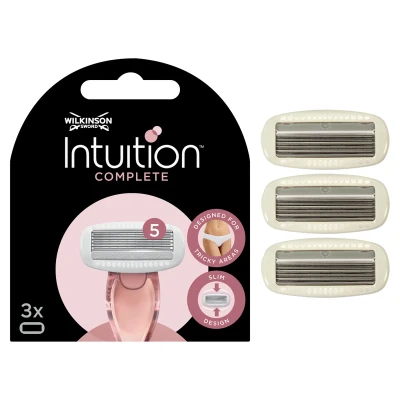 The Wilkinson Sword Intuition Complete 3 X Blades offers a smooth, irritation-free shave with 5 skin-perfect blades and a protective gel. Enriched with Aloe Vera, Shea Butter, and Avocado Oil, it’s ideal for sensitive skin and hard-to-reach areas.