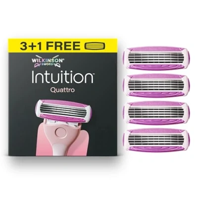 Wilkinson Sword Intuition Quattro Razors for Women, 3 Women’s Razor Blade Refills Plus 1 Bonus