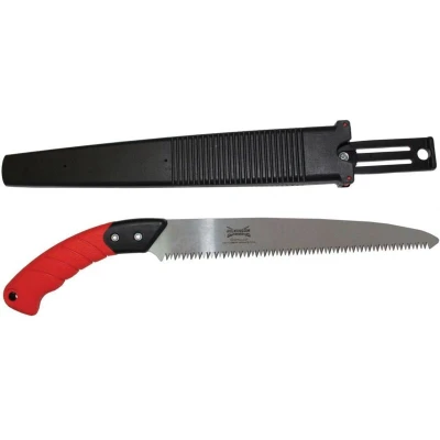 Electrical WorldThe Wilkinson Sword Pruning Saw and Holster has triple ground teeth that deliver a smoother cut and effortlessly saws through thicker branches. • Non-slip, comfortable TPR rubber handle • Supplied with holster which can be attached to a belt for safe storage and transportation • 25cm blade length Technical Specification: Overall Length: 440mm Blade Length: 250mm Tool Head Width: Max 40mm