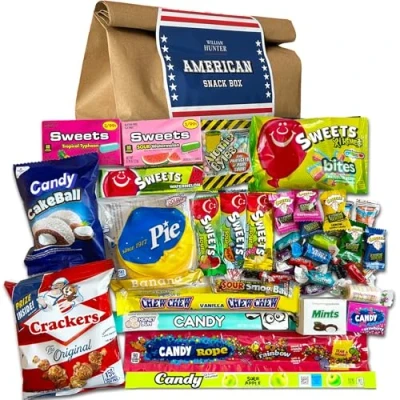 William Hunter American Sweets Gift Bag Wide Selection Sweet Hamper, Great Value Hamper for Children or Adults, Mystery Box of Iconic Candy