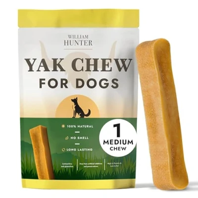 William Hunter Himalayan Yak Chews for Dogs Long Lasting Dog 100% Natural High Protein Dental Aggressive Chewers (1 Medium Chew)