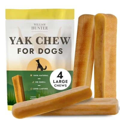 William Hunter Himalayan Yak Chews for Dogs Long Lasting Dog 100% Natural High Protein Dental Aggressive Chewers (4 Large Chews)