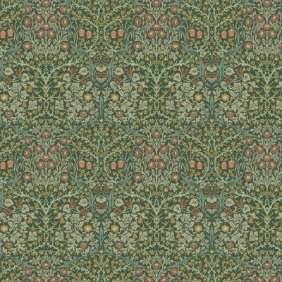 WILLIAM MORRIS AT HOME Blackthorn Deep Green Wallpaper Paste The Wall Floral Eco Friendly