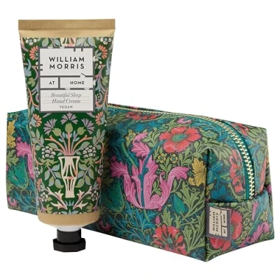 William Morris At Home Hand Cream 100ml and Makeup Bag, Moisturiser, Shea Butter, Magnesium, Travel Size, Toiletry, Cosmetic Wash Vegan Cruelty Free, Gift For Her