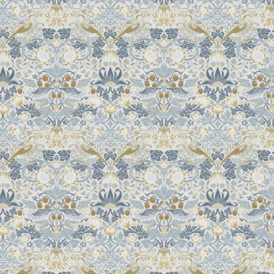 WallpaperDirectOne of William Morris's most iconic designs, Strawberry thief was inspired by thrushes stealing strawberries in his Kelmscott Manor garden. Illustrated beautifully to create a stunning Arts and Crafts style design. Seen here in the Soft Blue colourway.