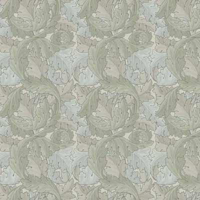 WallpaperDirectAcanthus leaves, a classical motif with a restful feel and a familiar design of William Morris. Swirling leaves in a contemporary hue and matte finish allow you to bring a large scale leafy design to your home. Seen here in the Sage & Duck Egg colourway.