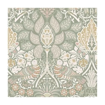 WallpaperDirectRe-imagined in a contemporary colour palette, this 19th century delightful floral damask with its pair of doves, has a timeless quality and elegant repeating pattern.