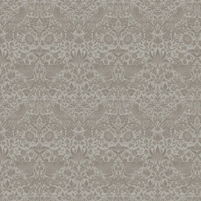 WallpaperDirectOne of William Morris's most iconic designs, Strawberry thief was inspired by thrushes stealing strawberries in his Kelmscott Manor garden. Illustrated beautifully to create a stunning Arts and Crafts style design. Seen here in the Neutral colourway.
