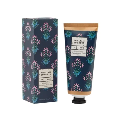The William Morris Beautiful Sleep Magnesium Body Cream is infused with the wonder mineral, magnesium to help prepare for beautiful sleep.The sleep-inducing fragrance formulation incorporates a meticulous combination of lavender, cedarwood, coriander, and vetiver essential oils. These oils are renowned for their calming and soothing properties, contributing to a restful sleep experience.Supercharged with skin-loving sweet almond oil, hydrating hyaluronic acid and antioxidant vitamin E to leave skin feeling soft and hydrated.Kraft paper tubes reduce plastic content by 30%. Printed with vegetable-based inks. Cruelty free and vegan friendly.