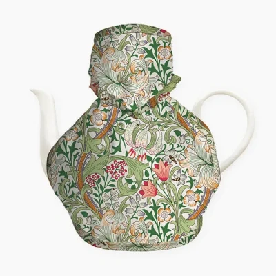 Part of the William Morris Gallery Golden Lily collection - originally a hand-block wallpaper print, it was later produced on fabric and has remained a classic and timeless design ever sinceEnhance your home with this William Morris Gallery Golden Lily Victorian Tea Cosy.Wipe clean finish and made from soft fabric.Cork base and stays on teapot - designed for traditional teapots.