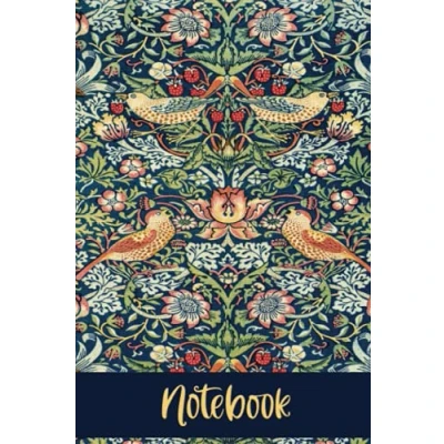 William Morris Notebook: Strawberry Thief Pattern (1883) 109 Pages 6x9 Ruled Lines