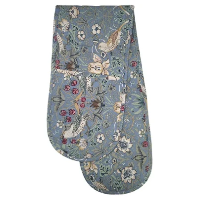 Part of the Strawberry Thief series, one of William Morris' most popular designs for textiles. It was inspired by the thrushes that Morris found stealing fruit in the kitchen garden of his countryside home, Kelmscott Manor, in Oxfordshire.Enhance your home with this William Morris Gallery Blue Strawberry Thief Minor Double Oven Glove.This double oven glove is fully quilted and heat test to 250 degrees.