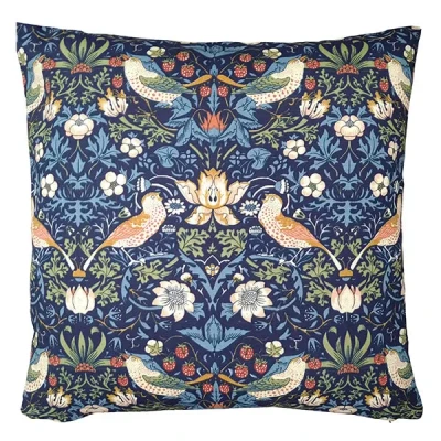 Part of the Strawberry Thief series, one of William Morris' most popular designs for textiles. It was inspired by the thrushes that Morris found stealing fruit in the kitchen garden of his countryside home, Kelmscott Manor, in Oxfordshire.Enhance your home with this William Morris Gallery Navy Strawberry Thief Minor Cushion And Poly Pad.Zipped with removable pad.Dimensions: 42cm x 42cm.