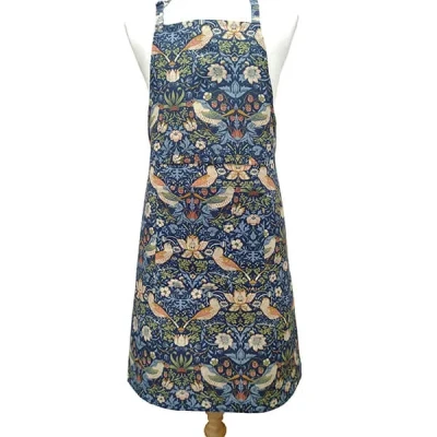 Part of the Strawberry Thief series, one of William Morris' most popular designs for textiles. It was inspired by the thrushes that Morris found stealing fruit in the kitchen garden of his countryside home, Kelmscott Manor, in Oxfordshire.Enhance your home with this William Morris Gallery Navy Strawberry Thief Minor Fabric Halter Apron.Dimensions: 90cm x 70cm. Equipped with an adjustable collar, has a front pocket and a strap for hanging a kitchen towel from.Other colours available, subject to stock.
