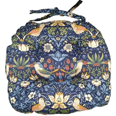 This Piped Seat Pad is part of the Strawberry Thief series, one of William Morris' most popular designs for textiles. It was inspired by the thrushes that Morris found stealing fruit in the kitchen garden of his countryside home, Kelmscott Manor, in Oxfordshire.Enhance your home with this William Morris Gallery Navy Minor Strawberry Thief Piped Seat Pad.Dimensions: 32cm (H) x 35cm (W) with 30cm ties.Please note, the rounded edge at the back of the seat pad may be smaller in width, approx. 32cm.