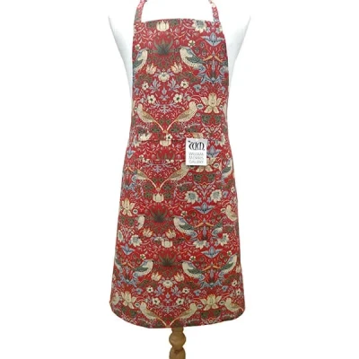Part of the Strawberry Thief series, one of William Morris' most popular designs for textiles. It was inspired by the thrushes that Morris found stealing fruit in the kitchen garden of his countryside home, Kelmscott Manor, in Oxfordshire.Enhance your home with this William Morris Gallery Red Strawberry Thief Minor Fabric Halter Apron.Dimensions: 90cm x 70cm. Equipped with an adjustable collar, has a front pocket and a strap for hanging a kitchen towel from.Other colours available, subject to stock.